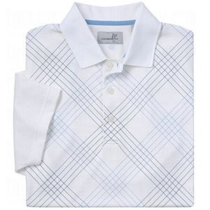 Mens Pima Jersey Polos Ashworth designs their apparel dedicated to function, quality craftsmanship and impeccable styling. It's for these reasons that Ashworth has become the standard in golf apparel for timeless styling that maintains its form and fashion for the long term. Ashworth Mens Pima Jersey Plaid Polos features: Lightweight polo is comfortable to wear with 100% pima cotton Fabric stretches for a greater range of motion Two color plaid design on the front with solid sleeves and back Solid rib knit collar with fully taped neck seam Three button placket with embossed Ashworth buttons Short sleeves have an open hem Longer back hem Taped vented sides for added durability Golfman logo embroidered on the back yoke Colors: [ATTRIBUTE_LIST: color] Sizes: [ATTRIBUTE_LIST: size] Ashworth...Made For Golf...Work...Play...Any Day!